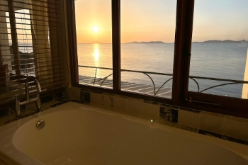 お部屋は全てオーシャンビュー、窓から臨む景色は、到着した瞬間から時間と共に美しく変貌を遂げていきます。